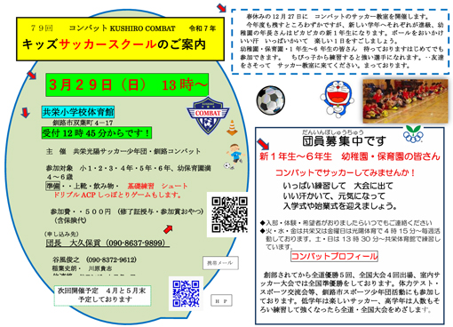 3月29日(日)に,キッズサッカー教室を行います。多数のご参加をお待ちしています。
